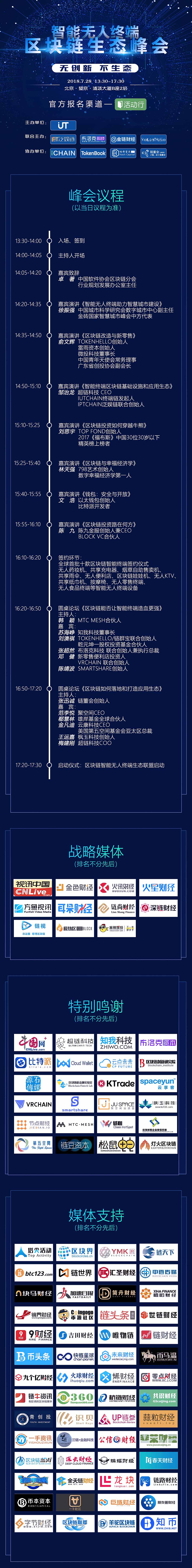 区块链革命来势汹汹,方兴未艾,各路豪杰都在抢占未来的制高点。区块链技术虽然是未来世界的核心技术,但我们认为其并不可鹤立鸡群,而应与人工智能、物联网、大数据等技术相互赋能,只有这样,依托于区块链技术打造的全新生态才会更好的落地。带着这种思考,我们认为:被移动支付、大数据、云计算、物联网与人工智能等技术改造下的“新零售”是区块链技术天然的应用场景之一。 智能无人终端是完全基于机器数据和机器信任的商业模型,而区块链是建立在数学信任基础上的分布式数据库技术,两者可以完美融合,能够以机器数据为基础,在参与者之间快速建立信任和共识,重构消费终端的经济模型和信任体系。因此,IUT联合业界众多合作伙伴共同打造“智能无人终端区块链生态峰会”,我们诚邀业界伙伴共同来分享和探讨区块链与智能无人终端的生态模型,一同推动区块链技术的价值落地。 峰会议程(以当日议程为准) 13:30-14:00 入场、签到 14:00-14:05 主持人开场 14:05-14:20 嘉宾致辞 14:20-14:35 嘉宾演讲《智能无人终端助力智慧城市建设》 14:35-14:50 嘉宾演讲《区块链改造与新零售》 14:50-15:10 嘉宾演讲《智能终端区块链基础设施和应用生态》 15:10-15:25 嘉宾演讲《区块链投资如何穿越牛熊》 15:25-15:40 嘉宾演讲《区块链与幸福经济学》 15:40-15:55 嘉宾演讲《钱包:安全与开放》 15:55-16:10嘉宾演讲《区块链投资路在何方》 16:10-16:20 签约环节:全球首批十款区块链智能终端签约仪式 16:20-16:50 圆桌论坛《区块链能否让智能终端造血更强》 16:50-17:20 圆桌论坛《区块链如何落地和打造应用生态》 17:20-17:30 启动仪式:区块链智能无人终端生态联盟启动