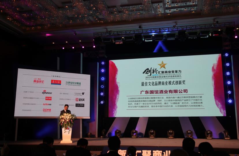 这是一个巨变的时代,而2015年更是风起云涌的一年。经济大环境的起伏与互联网的兴起正不断影响着各行各业和人们的日常生活,而唯独“创新”是掀动企业浪沙淘尽后脱颖而出的原动力。 2015年,国馆酒以其对中国酒业变革方向的把握与实践,以及对文化与商业的跨界结合上不断深耕、发掘与创新,不仅成为了中国酒业罕见的标杆和模板,更是为中国商业的变革起到了巨大的推动作用。就在12月29日,国馆收获了各行各业商业领袖、专家学者的一致认可,荣获了“21世纪中国最佳文化品牌商业模式创新奖”,为2015画上了一个圆满的句点。
