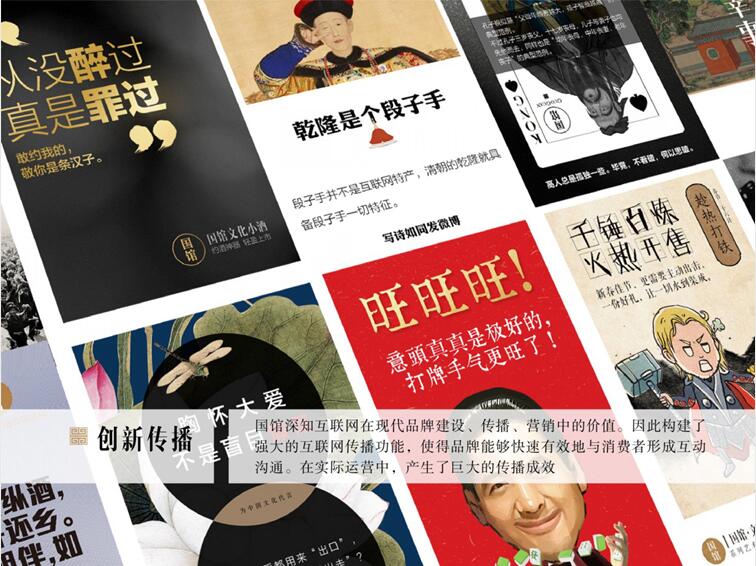 国馆私人定制酒与企业定制酒鉴赏 除定制服务的创新之外,国馆对“互联网+”模式的创新也是独树一帜的:不仅依托互联网对传统文化进行全新的解读与传播,更聚焦于借助互联网,开展消费群体的甄别与维护和核心群体的互动。因此,在国馆的互联网文化平台上,聚集了超500万的文化爱好者与文化消费群体,成为国馆品牌的忠诚粉丝。