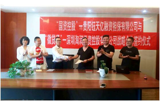 7月23日,贵州国有控股企业——钰天亿融资担保有限公司与微贷通正式签署全面战略合作协议。双方宣布,将发挥各自的资源优势,在融资担保、资源共享、市场开发等领域进行深度合作,加强粤黔两地经济之间互补互惠和资源流通,综合广东沿海经济特区优势以及贵州开发建设热潮,推动普惠金融在西南地区向纵深发展,不断促进双方合作战略升级。