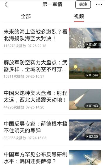 随着军事谈话类视频节目“张召忠说”在头条号上爆红,不少军事类视频生产者开始意识到头条视频个性化推荐的威力。著名军事记者贾勇创办的军事自媒体“第一军情”,2016年4月7日至今,其在头条视频播放量几乎篇篇突破 10万 + ,爆款成为家常便饭!其中,《硬气!南海官兵最强军令:南海有我们,祖国请放心!》这一条播放量更是达到了惊人的 192 万。