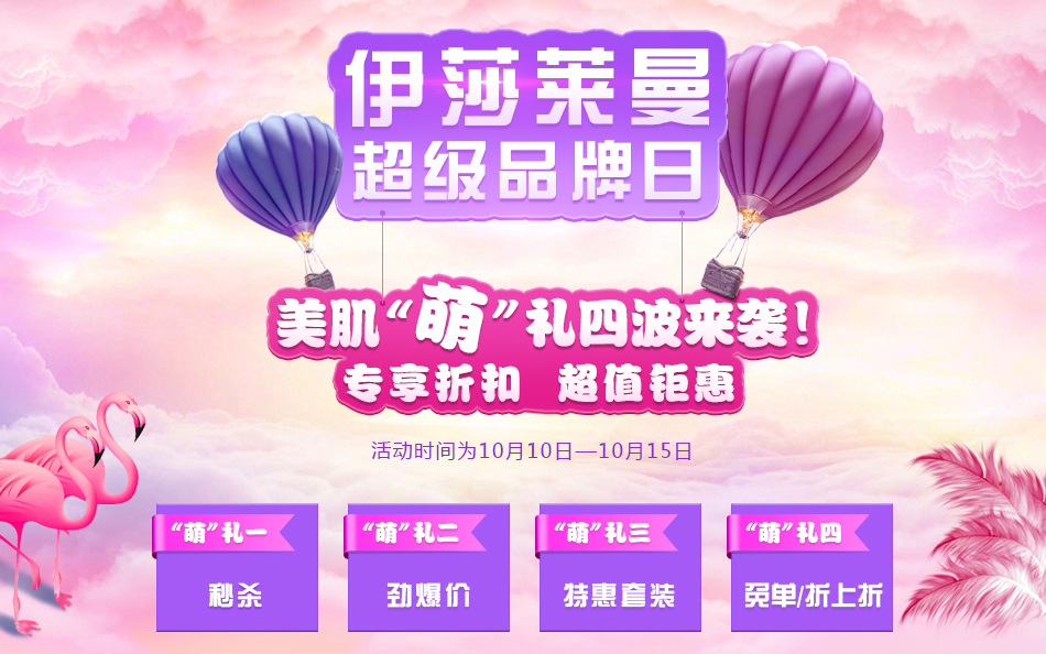 10月10日为伊莎莱曼品牌日,也是响当当的“萌节”。眼看着“萌节”又近了,你准备好卖萌了吗? 为了让你更好地卖萌,伊莎莱曼已经准备好为你送“萌”礼了!此处应有掌声。 品牌日期间,京东、淘宝伊莎莱曼官方店铺都将进行全场折扣优惠促销,多店狂欢庆生,回馈粉丝。活动将自10月10日起到15日,为期6天时间,错过只能再等一年!