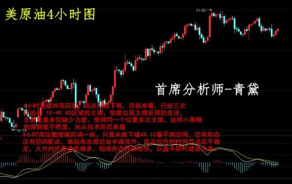 法国兴业银行原油市场研究主管魏特乐(Mike Wittner)指出,通常这种仓位震荡的情况发生在几个月之内,如今这种情况发生在短短几周之内,预计将迎来重大变化 青黛话金分析师-原油分析: 周一整体收低,亚欧盘守住49.80低点走反弹,美盘开盘时段触及50.58高点承压,虽然市场仍然关注产油国减产的消息,但这些消息给油价带来的支撑逐渐减弱,取而代之的是原油市场供应过剩的事实,在供应过剩的压力下,配合技术面的震荡走低,下破日低点至49.46.日内的高低点都是在美盘时段出现,但是空间仍然有限。