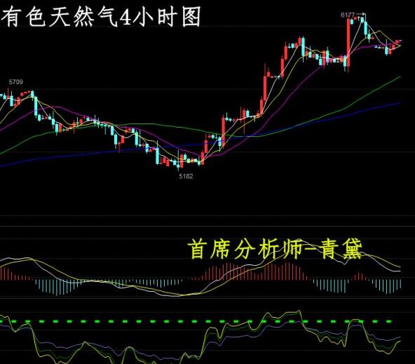 青黛话金分析师-天然气: 从日线图来看,早间开盘跳空59个点,均线系统上行且5日均线损向下,布林带张口向上,价格运行在布林带上轨下方,附图MACD快慢线向上发散运行,红色能量柱缩量,KDJ指标三线聚拢向下有死叉形成之势;从4小时图来看,5日均线上穿10日均线有进一步向20日均线逼近,布林带张口有走平迹象,价格运行在布林带中轨下方附近,附图MACD快慢线死叉下行,绿色能量柱增量迹象明显,KDJ三线指标死叉下行发散。