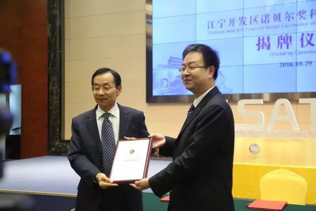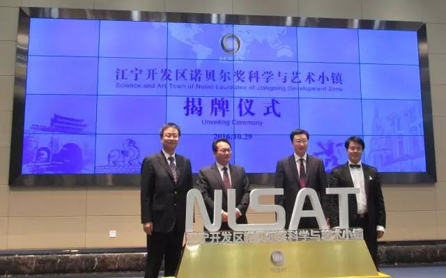 10 月 29 日,江宁开发区“诺贝尔科学与艺术小镇”揭牌,并迎 来小镇首位诺奖得主荣誉市民。“诺贝尔科学与艺术小镇”由江宁开 发区管委会、德国中德科技园、中国工业报社、南京艺术学院四方携手打造。这是继 10 月 10 日项目正式签约后,“诺奖小镇”建设取得的重大实质性进展,标志着其创新体系构建又迈出了重要一步。