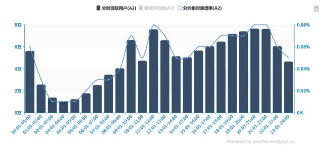 沪江网目前有移动APP—沪江网校,属于K12教育中的外语小类。根据易观千帆数据显示,2017年4月,活跃用户52.37万,人均单日启动次数3.19次,人均单日使用时长28.83分钟。中小学生辅导类的移动App, 用户活跃时间也有明显的差异。如下图所示,沪江网校App用户活跃时间集中在上午9、11点、12点以及下午5点过后开始持续呈现高峰状态,这与学生晨课完毕,进入自习阶段,对辅导类app使用更加活跃。