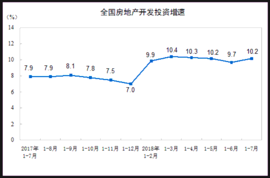 原标题:2018年1-7月份全国房地产开发投资和销售情况 人民网北京8月14日电 国家统计局今日公布数据显示,2018年1-7月份,全国房地产开发投资65886亿元,同比增长10.2%,增速比1-6月份提高0.5个百分点。其中,住宅投资46443亿元,增长14.2%,增速提高0.6个百分点。住宅投资占房地产开发投资的比重为70.5%。