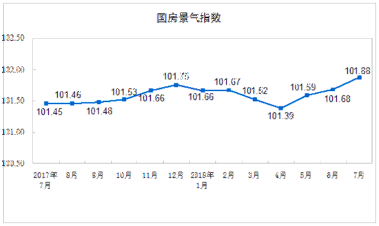 房地产开发景气指数 7月份,房地产开发景气指数(简称“国房景气指数”)为101.88,比6月份提高0.20点。