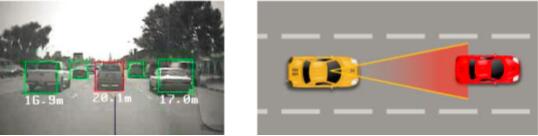 (2)前碰撞追尾预警(FCWS)。 前碰撞追尾预警系统持续监控前方车辆,可以在发生碰撞危险前2.71秒发出警报,提醒驾驶员及时刹车制动;