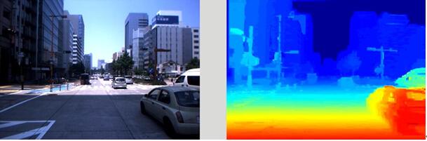 (单目视觉效果图) 双目视觉的原理有点类似于3D电影,将相机拍摄到的景物实时转换为距离,从而实现碰撞预警、车道偏离预警等ADAS功能,相比于单目视觉方案基于双目视觉方案的产品在性能和准确度上会有较大提升,并且基于双目方案的ADAS产品可以做到不规则障碍物碰撞预警,这点是单目产品做不到的。