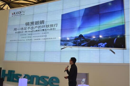 3月9号,已位居全球彩电三强的海信电视在上海AWE展会现场发布了其2016年度首个面向全球发售的电视新品—MU7000“世界观”系列ULED超画质电视,该系列新品2016年将在全球67个国家销售。
