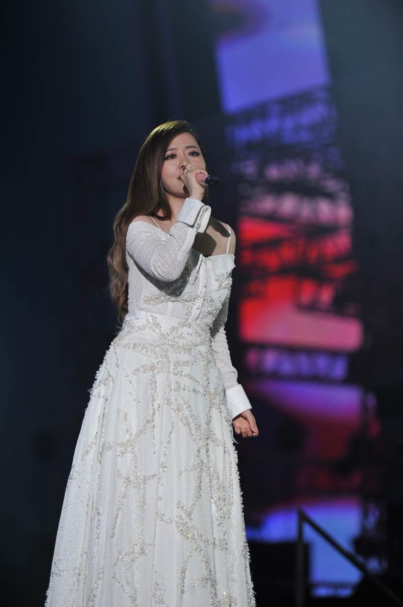 ↑ 张靓颖开场玩穿越,与历届盛典上的自己对唱(身着婚纱这是暗示要好事将近吗?)