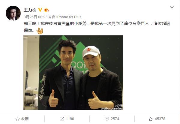 盛典结束后,王力宏也在第一时间发布微博表达对QQ音乐的感谢和粉丝们的支持。