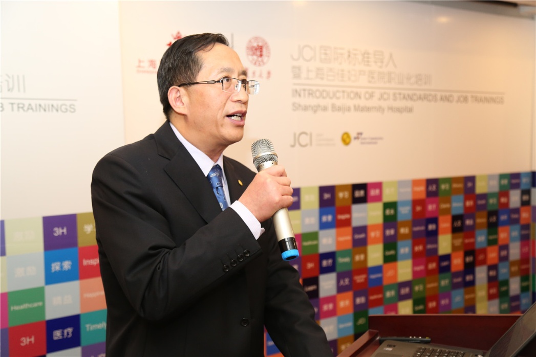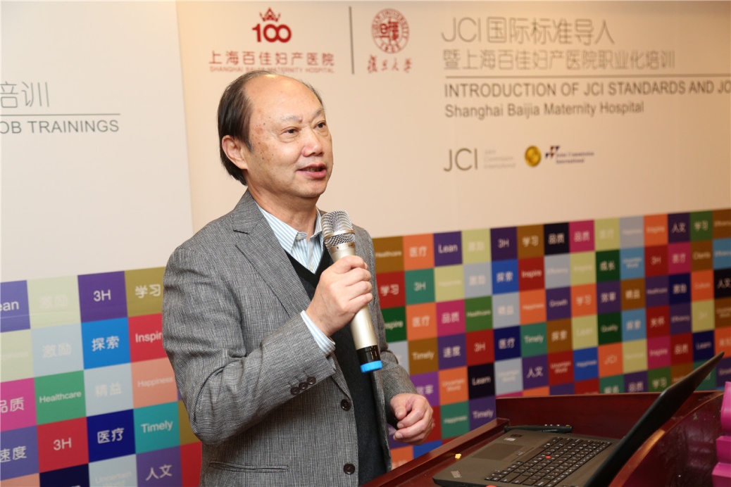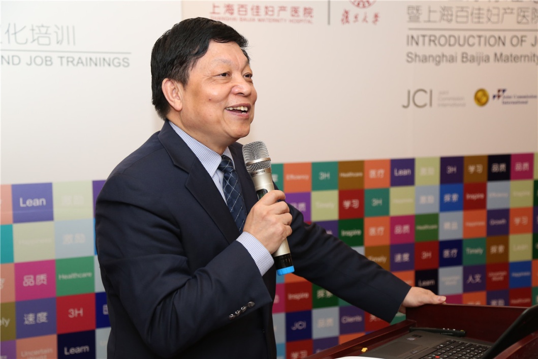 上海华山医院国际合作交流办主任林建华博士发表了热情洋溢的讲话。他说,上海百佳导入JCI标准,这是一个好的起点,JCI标准从患者的角度衡量医院运行、管理和发展的每一个细节,让“以患者为中心”的核心理念更加务实、详细,这无疑能让广大妇婴享受到更高品质的医疗保障。他还向大家介绍了JCI国际标准认证在全球的开展情况,并与大家分享了华山医院的JCI认证历程。