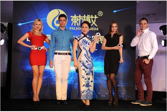 北京市朝阳区工商联主席梅诗曙先生致辞 现场共有4位帅哥美女模特为大家演绎了这款艾灸仪,分别在大椎,命门等不同的穴位进行精彩的展示。模特们或站立,或倚在车上,或摆各种姿势等,演绎了艾灸的现代感、时尚感、生活感、时尚感。这款艾灸仪时尚五彩色,金属质感,玲珑小巧,方便携带。