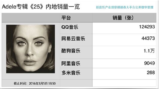 首先,需要明确的是,黄致列并不是很多媒体键盘下SM公司的艺人,这一点,已经被拥有雪亮双眼的“烈火们”数次指出过了,因此,对于数字音乐的合作,黄致列其实拥有很自由的选择权。而通过数据,也能明确看到,仅Adele《25》在QQ音乐一家的销量,基本等于其他所有平台加起来的两倍。 作为数字专辑(单曲)的缔造者,QQ音乐在这部分也拥有一贯的好口碑与号召力,黄致列“未念旧情”,甚至选择其进行独家合作,想必也是经过深思熟虑的,而从结果来看,黄致列选对了。