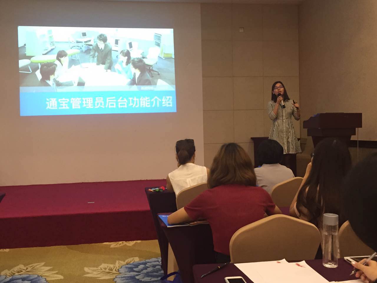 在上半场交流会上,由渠道网络产品顾问张迎娟女士现场演示了网络招商通宝话术的使用与功能。随着自主创业的趋势不断升温,创业者若想了解加盟项目的详细信息,通宝就提供了一条便捷通道。因其具有在线咨询和电话回呼两大功能,使创业者随时随地就能与商家进行零距离沟通。交流会中,讲师又以模拟操作的形式向现场来宾总结了行业客服通用话术遇到的各种问题,提高了通宝使用的满意率。
