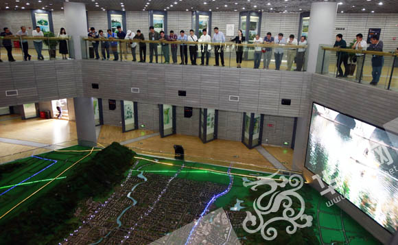 网媒总编一行参观璧山区规划展览馆。 首席记者 李文科 摄 璧山规划展览馆遵循“过去——现在——未来”的自然时序,重点突出“面向未来”的特点,展示了城市与产业发展规划,总编们认真听着讲解,不时还提出自己的疑问,深入了解了璧山的城区建设和未来规划。因为大量采用先进的多媒体、三维沙盘、缩微模型等高科技展示载体,总编们对个别展示区兴趣满满,其中幻影成像的板块吸引了不少人驻足研究,纷纷感叹展览馆设计充满创意和活力。 “这里的人真是生活在画里。”通网(陕西)总编辑王仕伟在参观了璧山规划展览馆之后,对璧山城区规划布局和人文相结合的方式表示赞赏,“不仅使交通得以改善,还富有前瞻性地花大力气进行生态保护,提升城市的综合服务功能,达到人与自然和谐相处。”