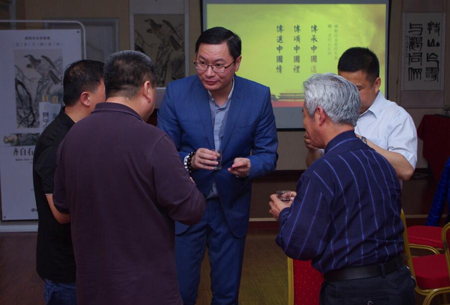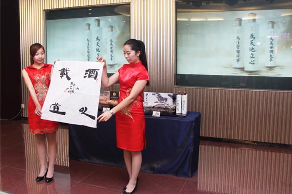 国馆代表姚晓群先生总结道:“在一个没有信仰的社会里,我们每一个人都是受害者”,继而又指出国馆的使命正是“酒以载道、为中国文化代言、重塑社会信仰、重树国人尊严”。 济宁: 为中国文化代言,当地艺术家助阵国馆 在山东济宁站,当地文化艺术精英齐聚一堂,共同参加了国馆会文化艺术私宴。古筝艺术家的现场演奏给到场嘉宾带来绝妙的视听享受,当地知名书法家现场挥毫,为国馆写下“酒以载道”四字。