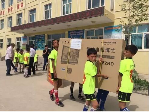 这也是足球成为依克萨克村骄傲的原因,这一体育精神也一直激励着依克萨克村的后代。校队在2014年8月获得了自治区青少年足球比赛第三名,2015年1月获得了阿图什青少年足球比赛第二名,5月,在乡里18个小学的足球比赛中获得第一名。 创维公益为社会播撒希望种子 创维集团成立28年间,在企业不断发展壮大的同时,一直把关注社会公益事业、持续践行社会责任当作企业精神的重要组成部分,开展了一系列全国性的公益活动——2003年,捐助“西部健康光明行”白内障儿童复明工程,让上千名贫困白内障青少年重见光明;2007年,发起“创维新农村影院工程”,为全国1亿父老乡亲放映近万场电影;2012年-2015年,举行“创维健康圆梦行”公益行动,向全国17个省份的81所红军小学,累计捐赠16万册图书、上百台电教设备,超过3万名学生受益。