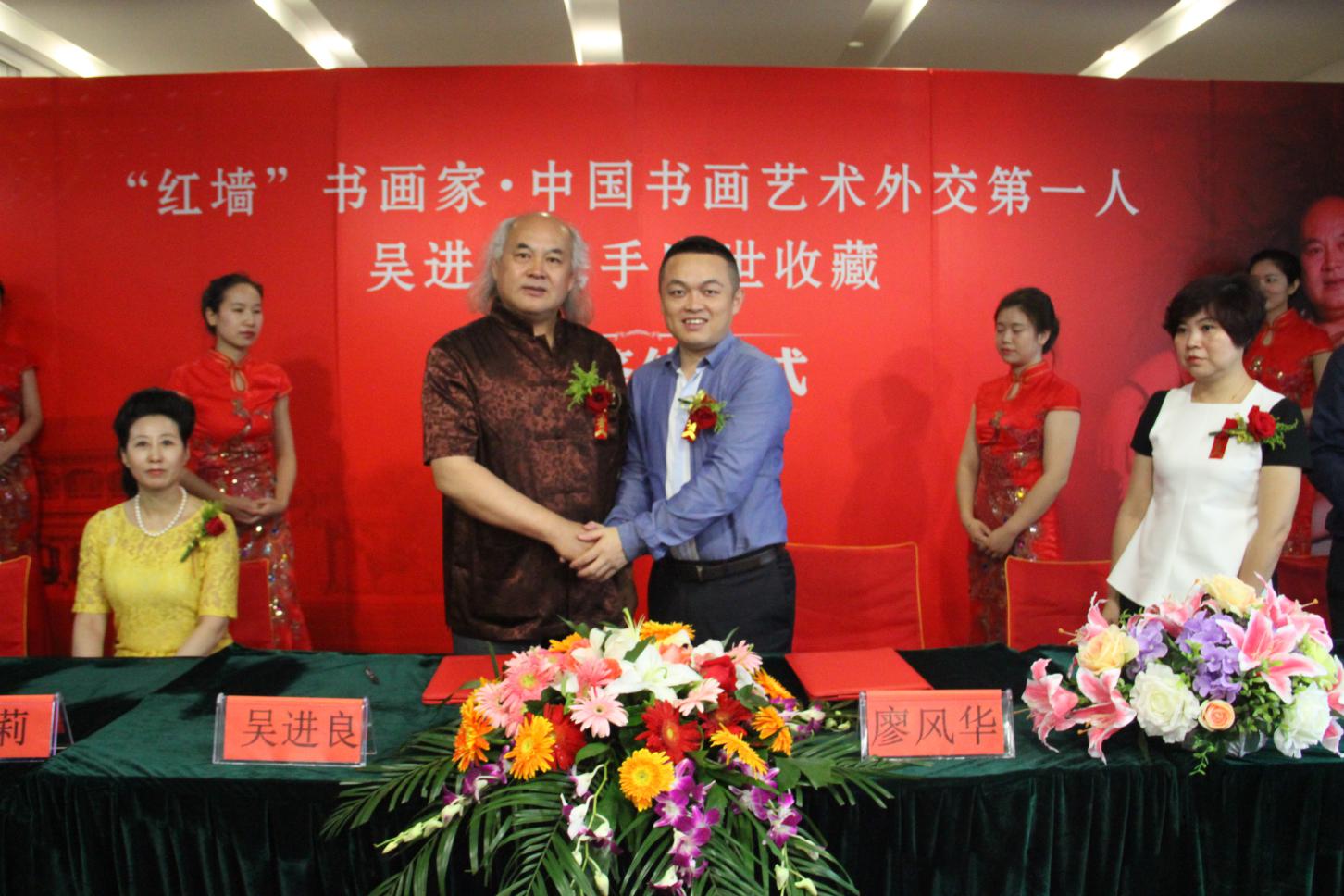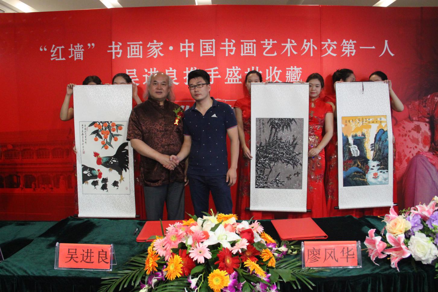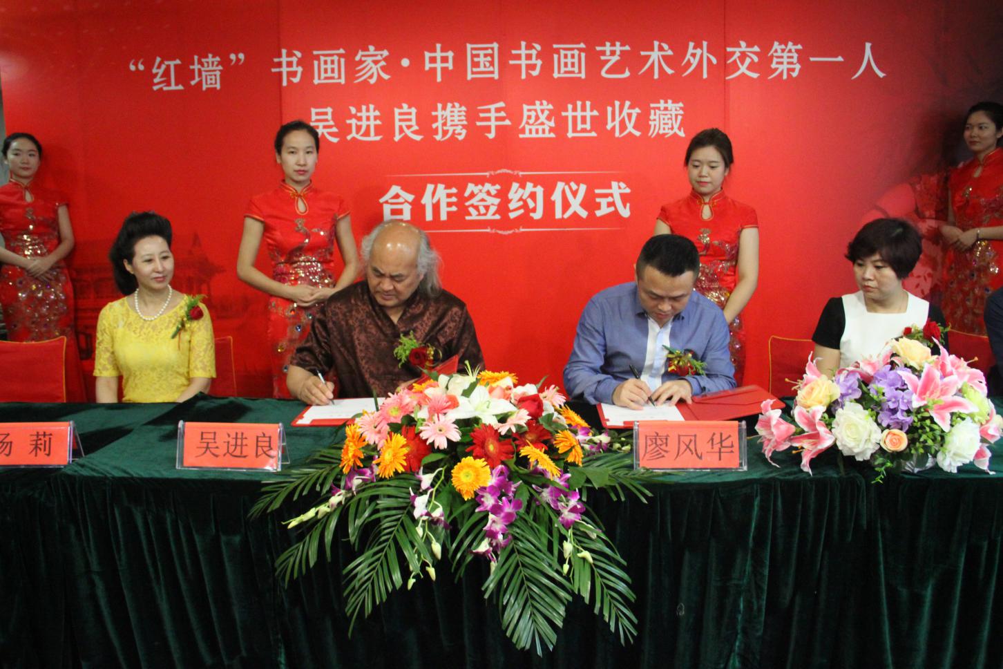 2016年7月2日,上午9点, “中国书画外交第一人” 吴进良先生与北京盛世收藏正式签署合作协议。期间,吴进良先生向媒体展示了多幅被选为国礼的作品,并与盛世收藏董事长握手留影,这些精彩瞬间被摄影师的快门永久铭记。
