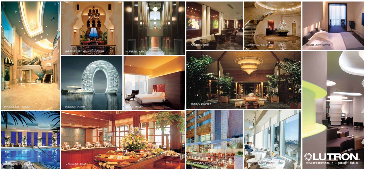 路创电子公司是全球知名的专业照明控制系统设计企业,其产品方案在酒店照明行业被广泛应用,台湾地区的君悦大酒店、香格里拉大酒店、香格里拉远东国际大饭店、维多利亚大酒店、温莎酒店等著名酒店客户均采用了路创电子公司提供的智能照明控制系统。自1998年以来,路创大中华区不断发展,已经成为区域市场最具影响力的前沿品牌。 路创电子公司在酒店照明控制方面的研究经验十分丰富,其推出的myRoom客房控制系统,即定位于高端酒店客户服务的照明控制解决方案。该系统集中了灯光、温度、窗帘控制等智能研发成果,能够实现专业定制功能,满足酒店客户多元化的预算结果,系统根据不同需求分为首选版及升级版,使用占空感测、开/关门和墙控器按钮按压信息组合实现对酒店客房的有效控制,集成了酒店客户灯光照明管理系统,并为入住客户创造独一无二的个性化服务空间,入住客户仅需要操作按键,就可以自主调节酒店套房内的照明环境,并对空调暖通系统、窗帘系统进行一键统一控制。整个过程简单便捷,无需酒店工作人员繁琐讲解。
