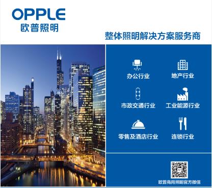 作为国内照明领先企业,一直以来,欧普照明持续推出专业、创新的照明产品,提供更具人性化的照明体验,践行“用光创造价值”的照明理念。在提升自身品牌价值的同时,带动整个照明行业向前发展。目前,欧普商用照明已经覆盖了办公、地产、市政交通、工业能源、零售及酒店、连锁等行业。