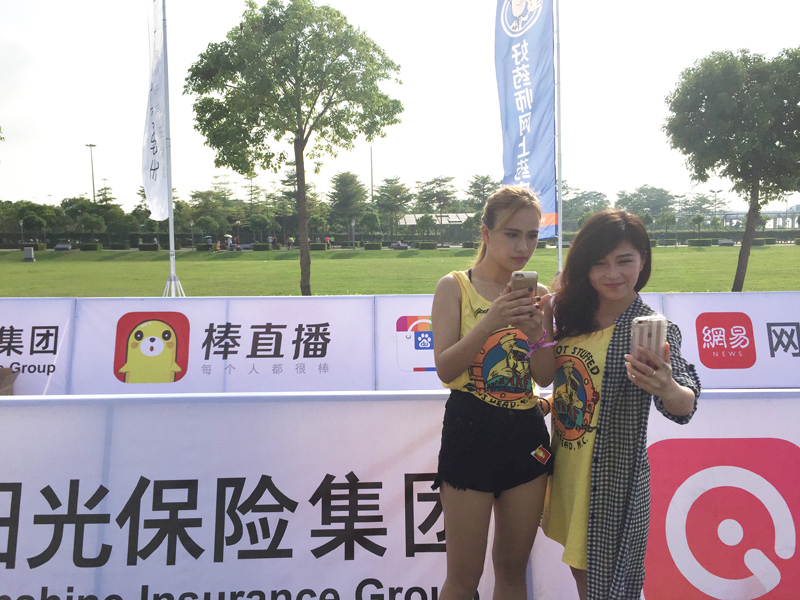 棒直播女主播热力陪跑 赛场互动化身鼓励师 集千万宠爱于一身的棒直播美女主播陪跑,在赛道上与参赛者共同进退。在比赛中,她们化身贴心鼓励师,现场为参赛选手递水,擦汗,捶肩,揉腿。并组成啦啦队用几十支水枪为选手湿身降温,在炎炎夏日中送上及时的清凉。