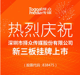 8月9日消息,新三板官网最新公告资料显示,深圳市择众传媒股份有限公司于今日在新三板挂牌上市。 深圳市择众传媒股份有限公司是一家专注于移动互联网DSP效果广告的广告技术公司,在数字营销领域拥有十二项发明专利及软件著作权,创始人石亮和黎路分别来自腾讯和好耶。主营业务包括两个板块:一个业务板块是移动互联网DSP效果广告,另一个业务板块是移动互联网整合营销。 在移动DSP效果广告业务板块:择众传媒致力于为广告主提供精准受众分析与筛选、效果广告的投放与优化服务。公司作为国内较早进入移动DSP效果广告平台业务的公司,通过自主研发的数据挖掘技术作为底层支撑,在渠道端与各大主流媒体平台建立了良好的合作,在客户端积累了大量的行业资源,运营团队来自于知名主流媒体和广告公司,在业内具有良好的知名度和美誉度,业务量迅速上升,市场份额不断扩大。 在移动整合营销业务方面:公司专注于为客户提供专业的新媒体整合营销服务,依托微博、微信这两大热点社会化媒体平台,以及全国主流知名媒体平台,建立了丰富的产品体系,为众多全国知名品牌客户提供服务,服务内容包括互联网品牌构建、战役营销、自媒体托管运营、微信定制化解决方案、互动程序开发、微电影拍摄等。公司拥有丰富的营销策划及操盘经验,创意策划及技术实现水平得到众多品牌客户及专业组织认可,荣获多项业内知名广告奖项。 择众传媒本次挂牌上市的财务审计为中兴财光华会计师事务所(特殊普通合伙),法律顾问为北京市大成(深圳)律师事务所。 |