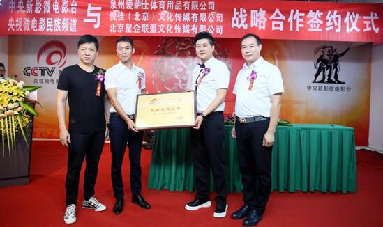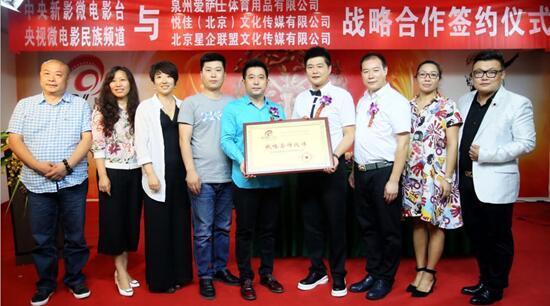 2016年8月18日上午,央视微电影民族频道在京举行战略合作新闻发布会。在发布会上央视微电影民族频道分别与泉州爱萨仕体育用品有限公司、悦佳(北京)文化传媒有限公司、北京星企联盟文化传媒有限公司(中国星企联盟)签署战略合作协议。
