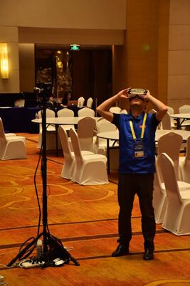 我们在现场可以看到,为了保证直播的画质,本次VR直播使用了目前顶级配置的VR拍摄器材, 配合商业级稳定的直播机及直播软件。特别是在会场光源环境非常复杂的条件下,依然保持了良好的图像效果(色彩还原度及对比度)。