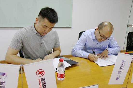 参观完远播教育的办公环境后,远播与智课正式开始签约仪式。