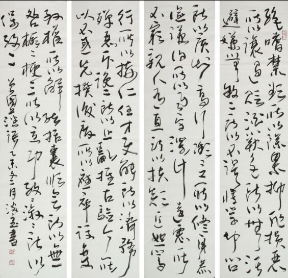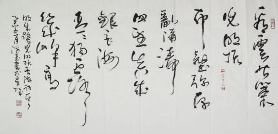![]() 淡墨在授课 多年来,淡墨潜心习画、做书,行、草、隶、篆游刃有余,制印始学秦汉,后学白石老人的单刀,方寸之间,尤见功底。原江苏画院院长赵绪成先生曾称道:淡墨是独辟蹊径的书画家,很少有人像他那样在中国画领域有自己的想法,有自己的用笔;他的书画作品,笔墨行处,皆诗、皆情、皆意,清丽豪放凝练的艺术语言,既为情感融造而来又为情感宣泄所用,淡淡的一缕水墨,令人顿生飘然欲仙之想;他的聪明之处,在于他真正领悟了“书画同源”的真谛;他的书法集众家之长,力透纸背的骨力自然使他的笔墨表现力如虎添翼;他用笔爽利、厚重、率意和轻松,把握用线的长短、湿润和收放,使书写的字既险峻又传神。淡墨作品欣赏: