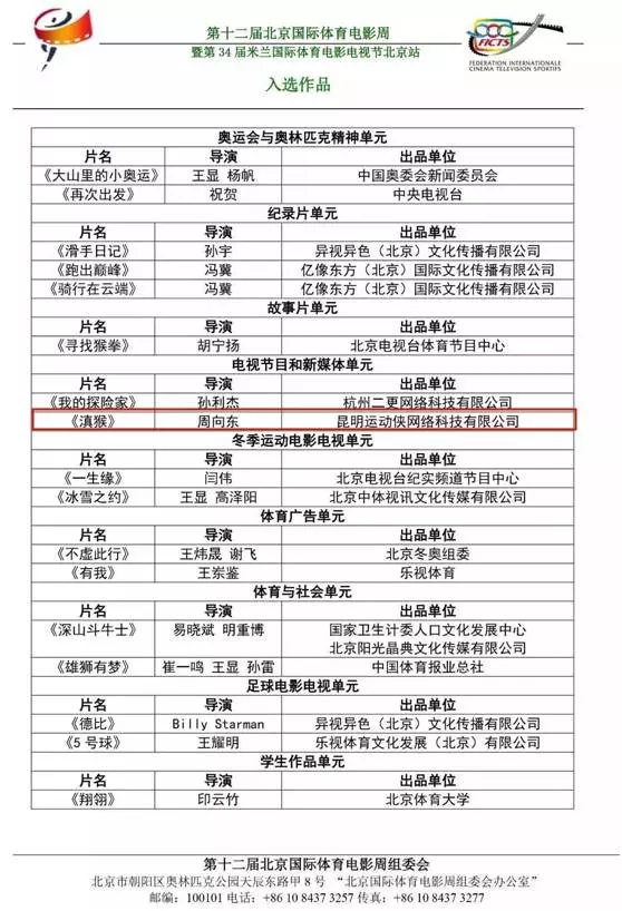 运动侠摄像制作团队 无意间撬动的线下运动培训市场 创业至今,周向东跨过不少难关,也收获了等量的惊喜。 2016年8月12日,第12届北京国际体育电影周评选出17部优秀作品,它们将代表中国前往米兰,角逐体育界“奥斯卡”金花环奖。其中有一部名叫《滇猴》的作品,就是出自运动侠之手,内容是云南跑酷第一人韩皓。周向东对于《滇猴》取得的专业荣誉十分惊喜。