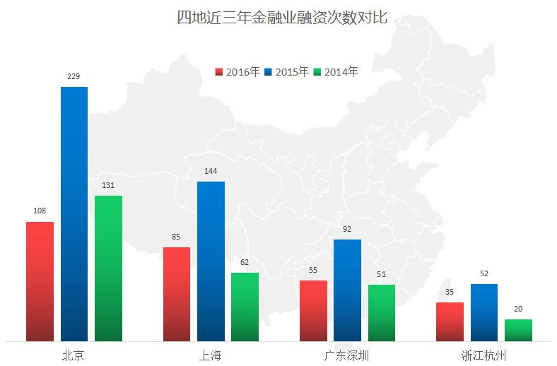 通过近三年金融业融资数据对比,投资机构更倾向于投向北京的企业。