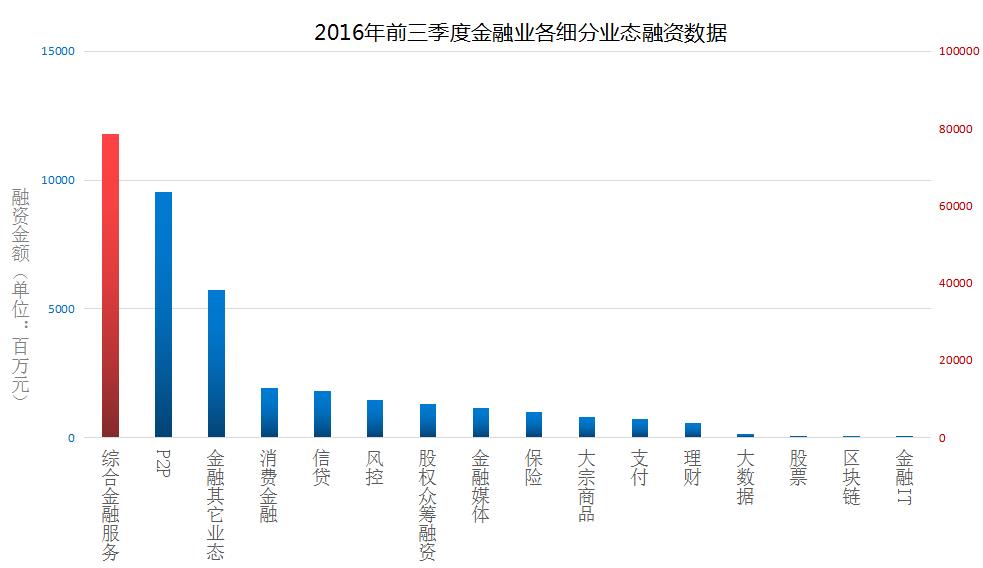 一般来说,投资机构致力于发掘和培育明日之星。金融业今日的蓬勃创新,赢得的是长远的未来。并且,北京是18家券商总部、59家保险公司总部、47家公募基金总部、11家信托公司总部,以及包含工农中建在内的14家大中型银行总部;北京在与上海的竞争中已经占据优势。北京在大众心中的符号定位,一直是中国的权力和文化中心,未来很有望成为超越上海、深圳成为中国金融中心。这无疑给金融业创业者带来启示,选择在北京创业,更便于了解国内的金融前沿,也在接近投资机构方面有地缘优势,也即距离资本更近。 前三季度投资机构投了多少钱 实际上,在金融业诸多细分业态里面,基本上都是近十年才兴盛起来的新金融(一般笼统称之为互联网金融)为主。比如,第一家P2P平台诞生于2007年;第一家通过互联网渠道销售保险的平台诞生于2006年;第一家互联网支付平台诞生于2000年。2016年获得投资机构青睐的金融业态大多数也是新金融。