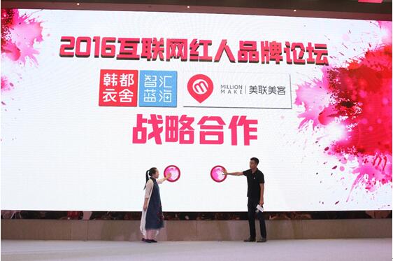 (现场签约仪式) 论坛现场还举办了韩都衣舍.智汇蓝海与美联美客的战略合作签约仪式。韩都衣舍.智汇蓝海深圳孵化基地CEO王佳齐表示智汇蓝海是基于网红品牌打造的全渠道全产业链服务平台,有专业的电商运营能力,有供应链能力及对外输出能力优势。场景通是美联美客在全国最大的户外媒体互动广告平台,覆盖线下10万公交车辆,1.2万个社区以及300多家影院场景,日2.2亿人次观看。场景通同时也是一个线上覆盖8000万人次,月均活跃1500万人次,微信粉丝总人数300万的移动新媒体。韩都衣舍.智汇蓝海与美联美客达成战略合作,意味着我们未来将会在户外屏幕看到网红的直播,并且可以直接进行购物体验。