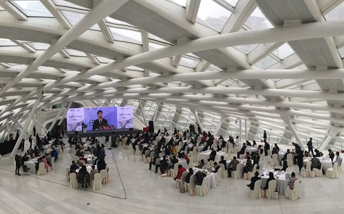 教育部学校规划建设发展中心主任陈锋先生、凤凰凤凰卫视副总裁,神州电视董事长何新京先生、重庆市原教委主任牟延林先生、教育部学校规划建设发展中心创新发展处负责人刘志敏先生、教育部学校规划建设发展中心产教融合促进中心负责人杨捷先生、凤凰教育行政执行总裁吴炜强先生、凤凰教育研究院院长张劲平先生、凤凰教育市场部总经理张德先生等领导共同见证签约。来自国内外100余家高校和数字媒体行业企业200余位代表出席签约和项目启动仪式。 凤凰卫视副总裁,神州电视董事长何新京先生代表凤凰卫视集团对与会嘉宾予以热烈欢迎,并表示“今年是凤凰卫视成立20周年,通过二十年的发展,凤凰卫视已经成为一家全媒体的跨国集团,旗下包括凤凰网、凤凰教育等二级机构。凤凰卫视作为媒体企业中的一员,将大力支持‘高校数字媒体产教融合创新应用示范基地项目’在全国的落地实施,希望全国高校能与凤凰教育和教育部学校规划建设中心共同携手,培养优质人才,推动产业发展”。