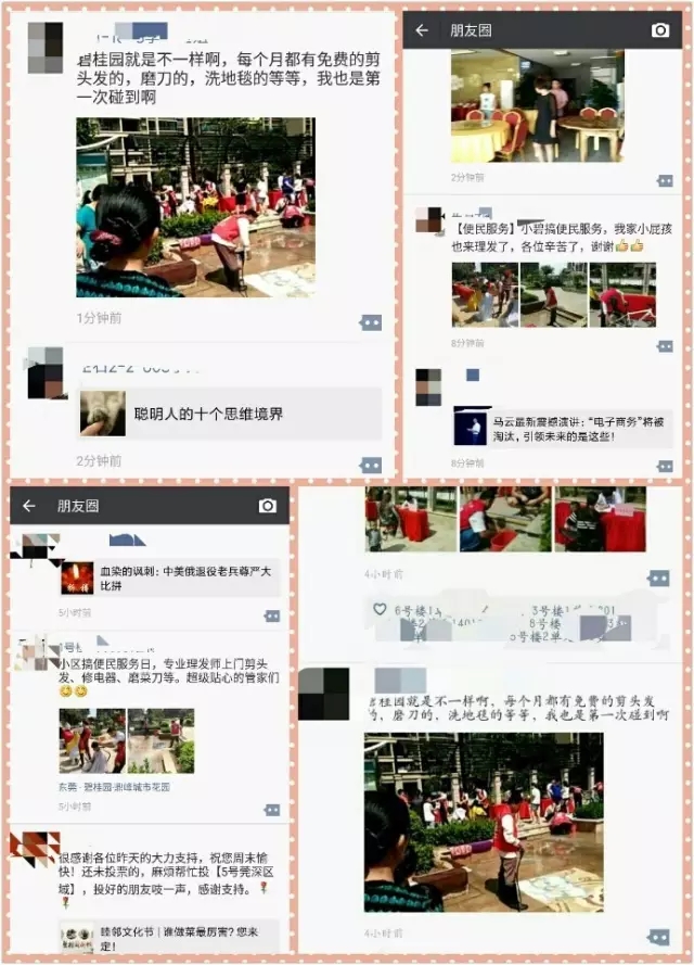 【这不小区业户也是毫不吝啬,刷图,晒自豪,业户朋友说不买碧桂园“蓝瘦、香菇”】 此次“便民服务暨经理接待日”活动圆满结束,使得便民服务更深入人心。日后将更是业户生活中不可缺少的一部分,每当业户有小家电需要维修、小区老人需要修剪指甲、或是业户家的菜刀需要磨、有需要清洗地毯,家里孩子需要理发以及您有任何个性需求和建议需要都可以向管家或管家团队的成员反映,生活有物业服务我们不要“蓝瘦”需求我们不要“香菇”!正如管家笑容灿烂脱口如是说的“您的5分非常满意,就是我们最大的动力!”现在更成为管家和业户朋友家喻户晓的口头禅! |