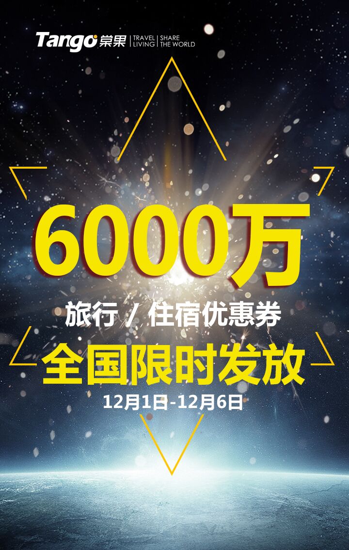 2016年旅游业的火热也带动了旅游住宿的火热,民宿短租这类新兴的住宿业态不断迎来入住高潮。棠果作为旅行民宿热门预订平台,为全球华人提供民宿、公寓、别墅、当地人文旅行预订服务,并不断推出大尺度的福利发放活动,此次将于12月1日-6日向全国预期发放30万张现金优惠券,优惠额度达6000万元。棠果一系列住宿重磅满减、优惠券旅行预订不限额使用的优惠政策,为大家带来了一场超级出行旅游盛宴。