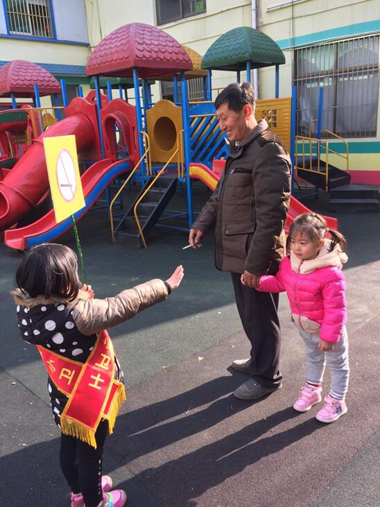 ——如皋市加力幼儿园开展文明礼仪教育实践活动 如皋市搬经镇加力幼儿园是一所农村幼儿园,大部分孩子的父母亲没有太多的时间陪他们,年轻的父母亲忙于工作,接送孩子的任务就落到爷爷奶奶的身上,有部分家长在接送孩子时,存在吸烟、乱扔烟头垃圾等现象,吸烟影响健康的同时,也给我们的校园带来一系列的卫生问题和安全隐患,给小朋友树立了不太好的榜样,小孩善于模仿学习大人的动作习惯。 为了营造一个温馨舒适的校园环境,培养幼儿良好的生活卫生习惯,同时教育家长朋友们爱护校园环境,懂得公共场所吸烟的危害性,并为小朋友做好文明卫生的表率,11月28日,如皋市搬经镇加力幼儿园大班开展了“保护环境,从我做起”的文明礼仪教育实践活动。
