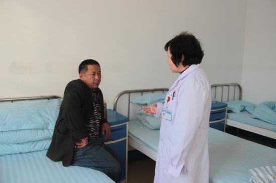 记者联系了一家爱心医院——济南远大中医脑康医院,医院医生上门为张(佰)涛进行了初步检查,并且劝说其去医院接受治疗。当张(佰)涛上车的那刻,陈大妈悬着的心放了下来,因为对于她来说儿子终于有救了。此时,惊人的一幕出现,陈大妈对着记者和医生深深的一个跪拜。她情绪激动,嘴里不停地说着谢谢。 陈大妈对着医护人员和记者跪拜 病发13年反复不断 专家诊断:双向情感障碍伴有躁狂 家里人并不清楚张(佰)涛为什么会出现精神异常的情况。自从他22岁那年初犯该病以来,已经有13个年头。这些年,家里人带着张(佰)涛也走过不少医院,看过不少医生,病情偶有起色。可一遇到点刺激,接着病情又加重。“本来治好过一段时间,去西边工厂干活,干的不少,拿不到工资,接着又犯病了。”陈大妈说道。最近,张(佰)涛的病情更是出现了严重的暴力倾向。