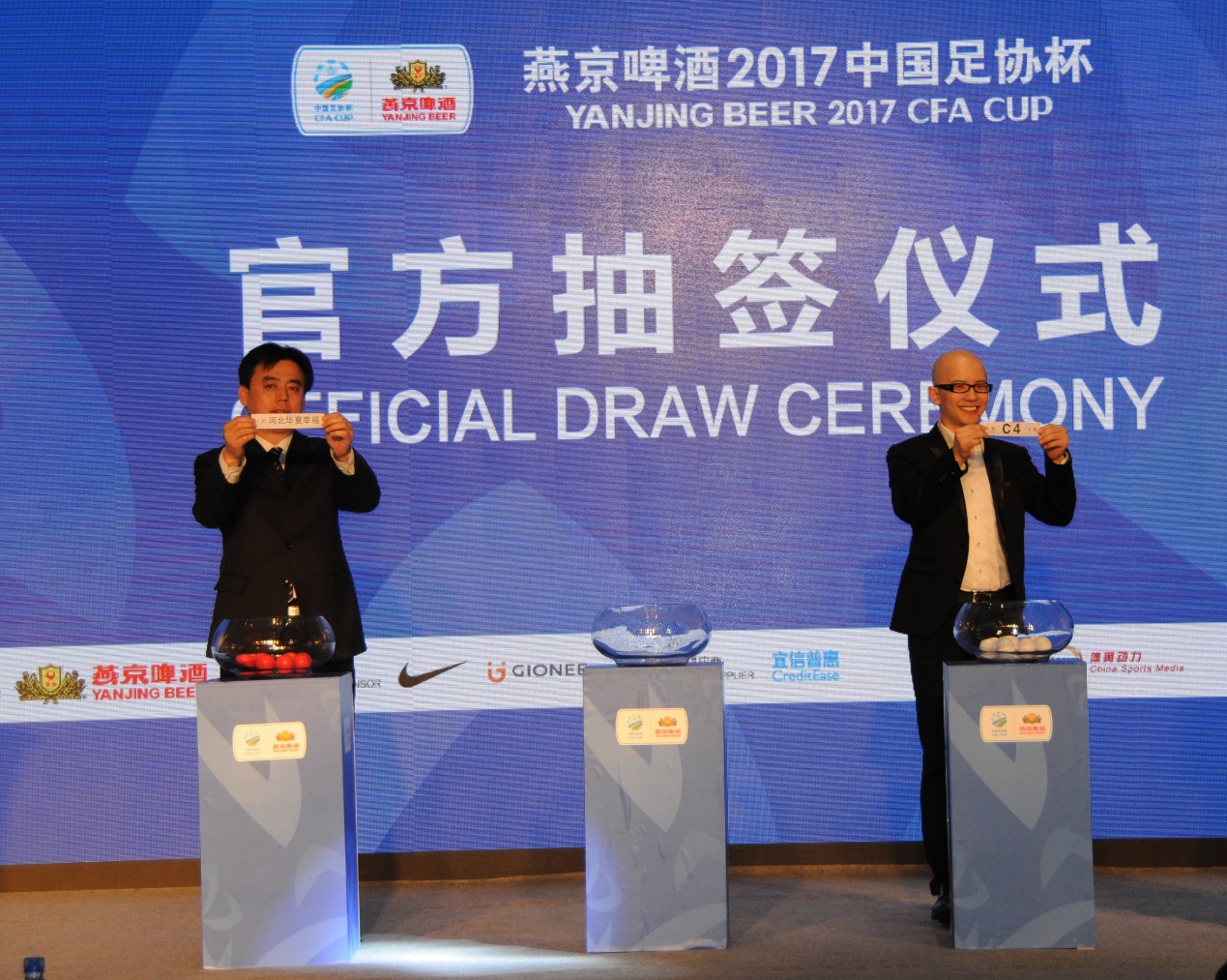 新春伊始,燕京啤酒2017足协杯抽签仪式于2月9日下午15时在北京昆仑饭店正式举行,并由央视网络平台进行直播,64支球队抽签纷纷落位。中国足协职业联赛理事会执行局局长马成全,中国足协执委、新闻委员会主任汪大昭,中央电视台主持人张斌、足球名将孙继海以及北京燕京啤酒集团公司副总经理谢广军等出席此次抽签仪式。今年也是燕京啤酒连续第4年赞助足协杯赛事,旨在支持和推动中国足球以及中国体育事业的发展,在提高“运动全民化、足球水平专业化”的同时,助推中国足球的早日腾飞。