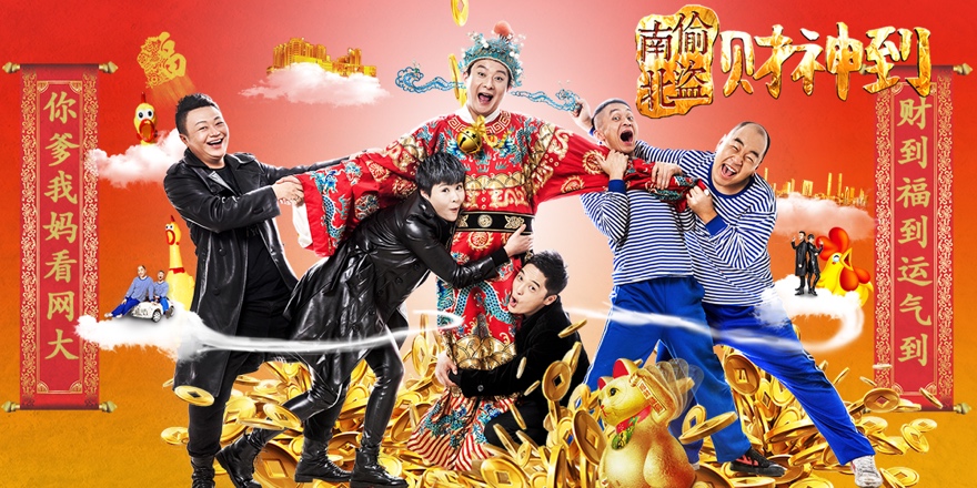 该片由上海锦辉艺术传播股份有限公司出品,互联网视频联运商壹亿威威独家发行运营。来自南北的知名喜剧演员希望以自己最好的表演,最搞笑的剧情,让所有的观众喜迎2017。 猪八戒要哭了 月老竟牵线财神、嫦娥 《南偷北盗财神到》讲诉了聚宝盆无意掉入人间,财神爷为了找回聚宝盆到人间走一遭的故事。 在一年一度的天庭“仙界人气排行榜”上,作为仙二代的财神爷再次凭借不凡的卓越成绩夺得榜首,深得玉帝宠爱,然而就在玉帝视察工作召见众仙的前半个时辰,在殿外与嫦娥和月老品鉴聚宝盆时,因为月老的不慎聚宝盆掉落凡间。财神不得不亲自下凡走一遭,用天上半个时辰人间七天的时间,找回御赐宝物。而在寻回聚宝盆的期间,财神爷也遇到了各种个样的人,以及各种奇葩的事,上演了一场搞笑贱萌的寻宝记。