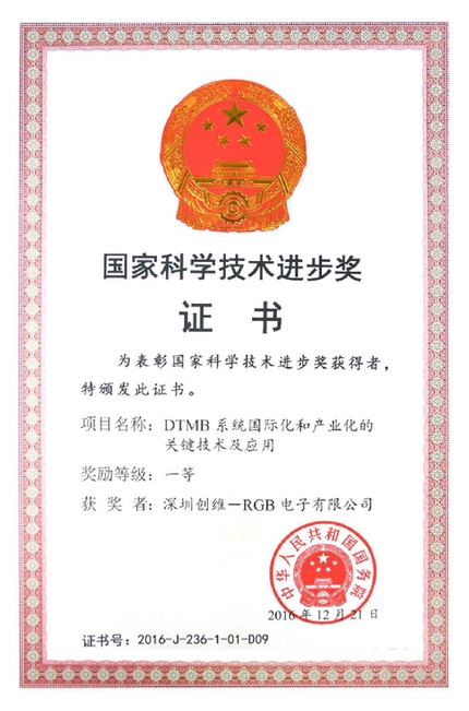 殊荣加冕,引领行业技术发展 2017年1月9日上午,一年一度的国家科学技术奖励大会在人民大会堂举行,这是国家最高级别的科技奖项。其中,共有包括创维在内的四家家电企业凭借参与研发“DTMB系统国际化和产业化的关键技术及应用”项目荣获国家科学技术进步奖一等奖。 据悉,2016年度国家科学技术奖共对279个项目、7名科技专家和1个国际组织进行授奖,而这一奖项也成为了家电行业在2016年度国家科学技术奖奖励大会上唯一的获奖项目。在中国家电产业创维获得“国家科技进步一等奖”这一科技界的至高荣誉,不仅意味着创维的科技创新成果得到了国家层面的认可与肯定,更是为低迷的彩电行业带来了无上光荣,为社会的进步做出了重大贡献。