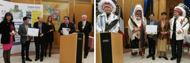 当天,黄建南还在桃花岛公馆获颁法国吉尼市荣誉市民勋章,大巴黎77省Jaignes市市长Achille Hourde向黄建南颁发了法国市民荣誉证书与奖章,表彰其为中法艺术文化交流所做出的贡献。当天,Achille Hourde市长夫妇、巴黎桃花岛公馆馆主郭义夫妇、旅法华裔古董艺术收藏家陆明夫妇、欧洲当代艺术家协会主席孙庆波、旅法著名策展人欣莉等中法艺术嘉宾应邀出席颁奖仪式并见证了这一时刻。