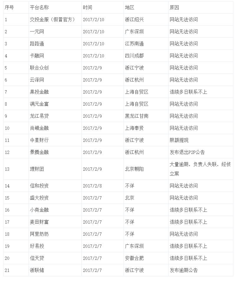 周成交额 据网贷天眼数据统计,截至2017年1月底P2P平台数量,相比去年12月底减少了60家,停业及问题平台就多达64家。目前正常运营平台数量为2388家,相比行业最“鼎盛”时期平台总数多达4000多家的盛况,缩水近一半;此外还有另一项数据,2016年第四季度成交量环比第三季度增长15%、待还余额环比增长16%、投资人数环比增长6%,且2016年各季度投资人数较2015年同期均有所上升。本周(2.3-2.9)网贷天眼对接数据P2P平台周总成交额为218.42亿元,日均成交额31.20亿元,借款项目平均借款期限日均为4.57个月,款项目日均综合利率为11.67%。 “每年春节过后都会出现回暖的现象,这个受投资人春节前后的周期有较大关系。网贷行业经过2016年的规范发展可以看出,投资人对于行业还是比较看好,同时规范化一定会成为行业一直的主旋律。”银客理财CEO郭新涛表示。 业内人士认为,春节刚结束,又是强调继续专项整治,又是发布网贷登记备案管理办法,还有打击农村非集的中央一号文件,看来互金的2017会是个忙碌之年。随着监管力度的不断加大,网贷行业今年也许会发生翻天覆地的变化。想想还有半年的过渡期,网贷行业平台停业转型的步伐还会继续,行业洗牌还会持续深入。届时随着行业集中度不断提升,P2P网贷行业的发展也将越来越规范,越来越健康。 此外郭新涛还表示,监管部门对于规范化发展的平台更多的是支持和包容,为互联网金融预留一定的创新发展空间。对于平台,依靠活动和补贴获取用户的时代已经过去,随着投资人的逐渐理性和成熟,平台如何能够源源不断的获取优质资产,如何能够真正解决实体经济融资问题,最终会获得用户的青睐。 附:问题平台名单(数据来源网贷天眼)