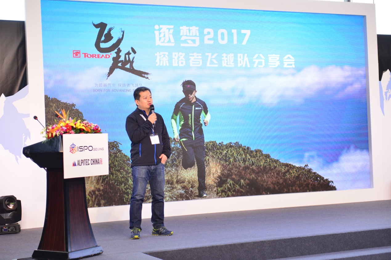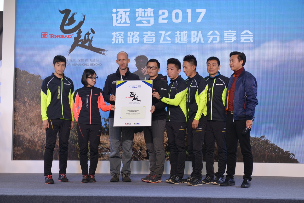 2017年2月16日,飞越队就2016年成果以及2017年期望,在ISPO召开“逐梦2017探路者飞越队越野跑分享会”,探路者品牌中心副总裁沈阳先生与探路者品牌徒步事业部丁娟女士莅临发表讲话,并展示了2017年新款产品。而在活动现场探路者飞越队还收到了世界探险越野系列赛赛事总监Craig发出的参赛邀请函,这无疑也标志着探路者飞越队在新的一年将继续迎接更具难度的挑战。与此同时,探路者飞越队部分队员向付召、贾俄仁加、“毛毛”周楚燕、张振龙等也纷纷亮相,并分享了自己跑步背后的心路历程。