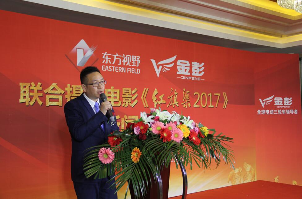 河北东方视野文化传播股份有限公司总经理张杰 江苏金彭车业有限公司作为全球最大的电动三轮车企业,是电动车行业最早“涉足”影视产业的企业,曾在多部影视作品中植入品牌与产品。电影《红旗渠2017》是江苏金彭车业有限公司首次以联合摄制的“新身份”助力影视产业,旨在传承并弘扬中国优秀文化,坚定文化自信。