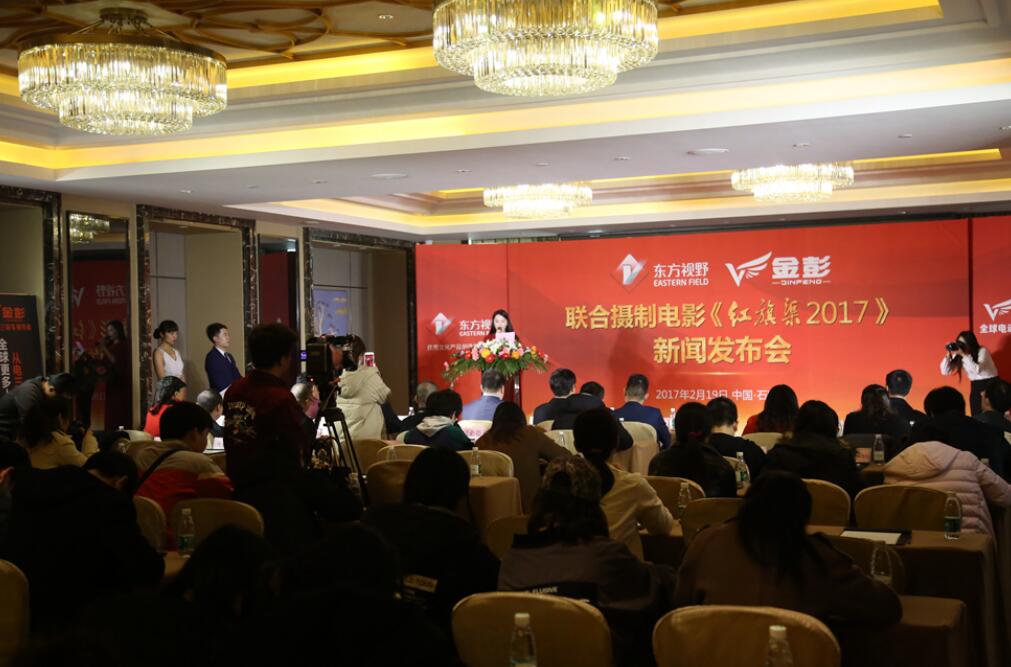 河北东方视野文化传播股份有限公司和江苏金彭车业有限公司首次联合摄制的电影《红旗渠2017》在石家庄举行新闻发布会,联合发布了中国企业首份“弘扬红旗渠精神,坚定文化自信”倡议书。